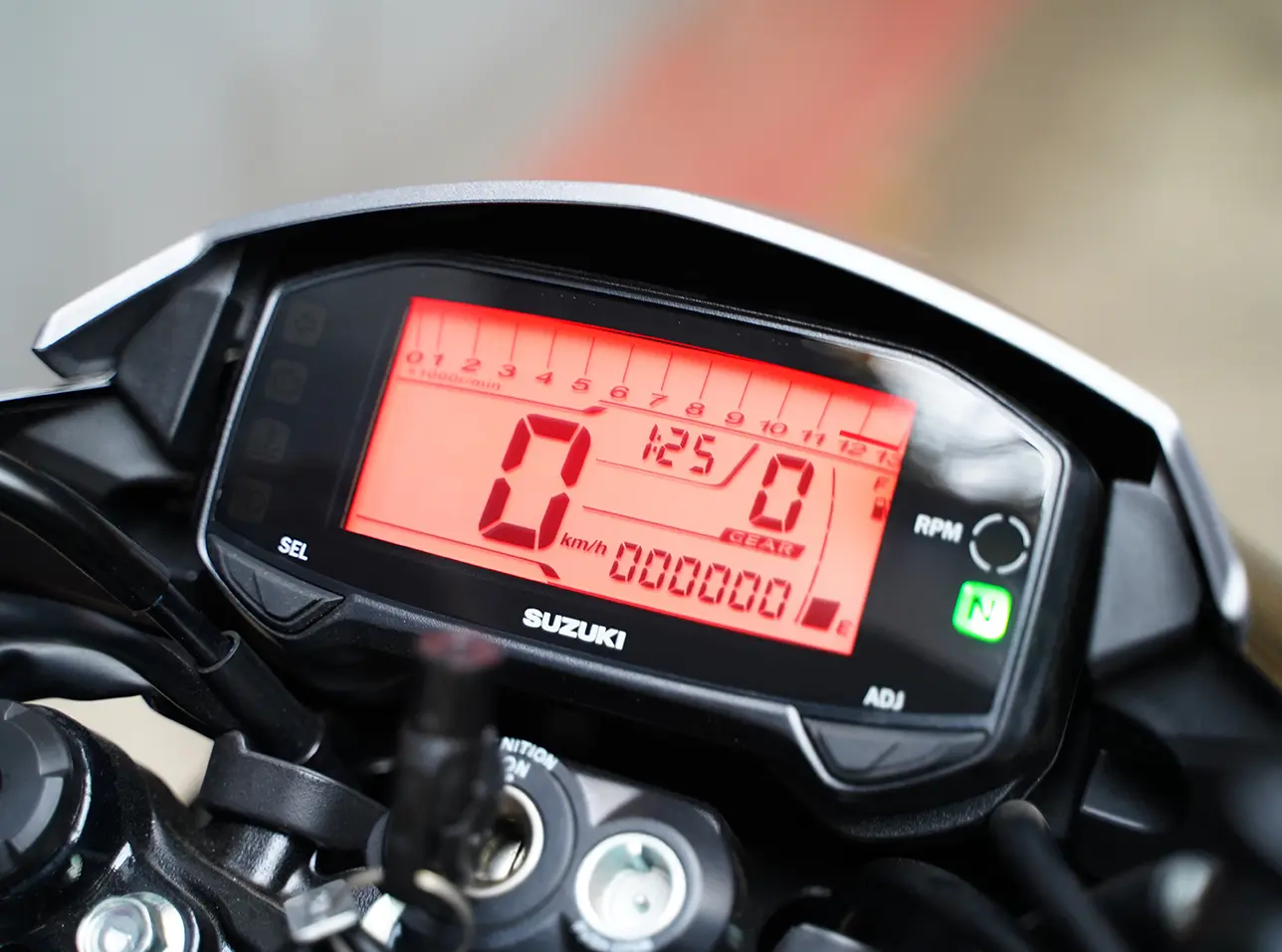 Hệ thống tiện ích trên Suzuki Satria F150 2026 tập trung tối ưu khả năng kiểm soát và an toàn tuyệt đối.