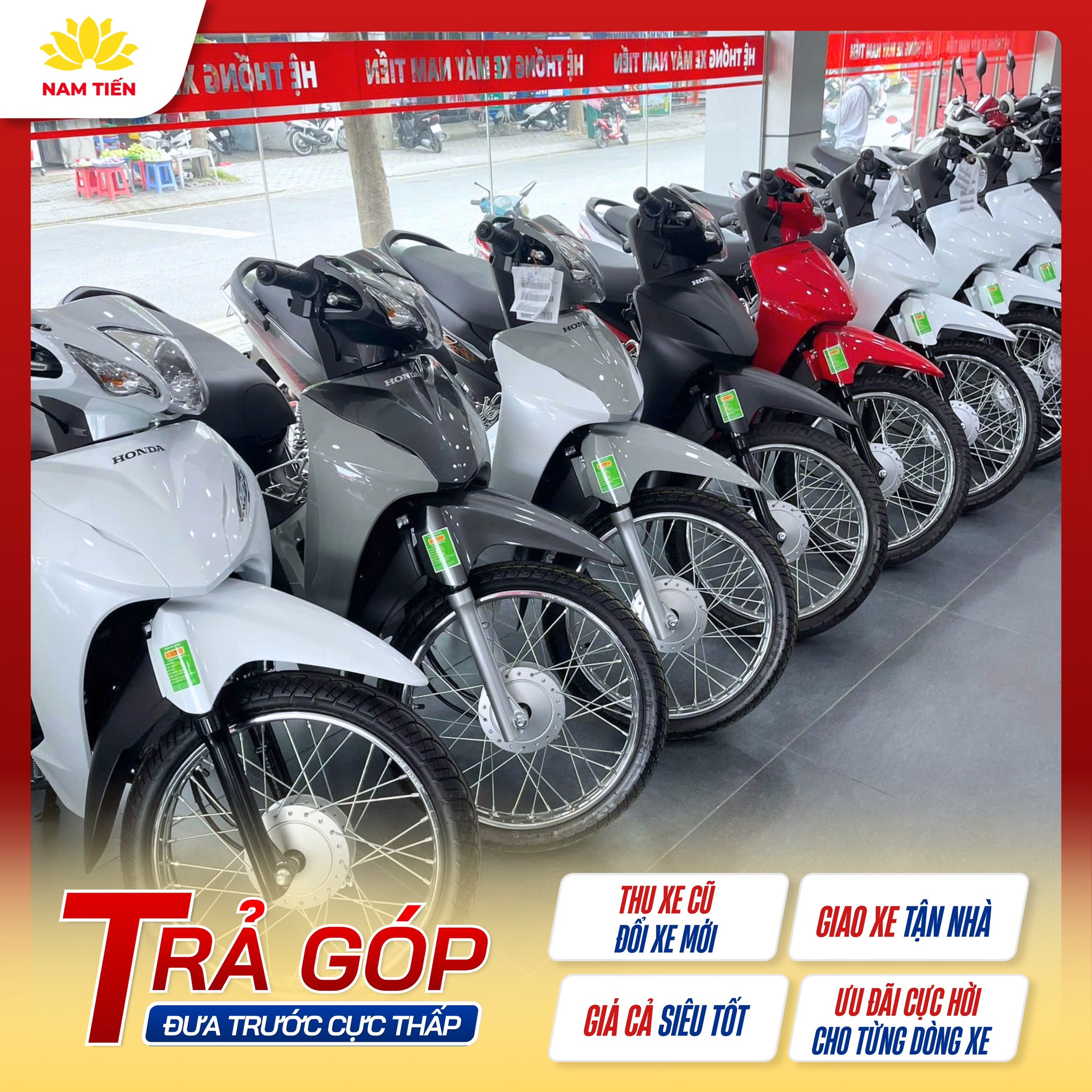 Showroom Nam Tiến chuyên cung cấp các dòng xe máy chính hãng từ Honda, Yamaha và một số thương hiệu uy tín khác. Khách hàng khi đến đây sẽ được trải nghiệm: